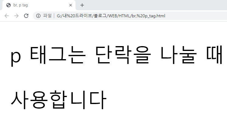 <br> 태그는 해당 부분이 단락이라는 것을 의미하지 않고 단순히 줄바꿈의 의미만 지니고 있을 뿐입니다