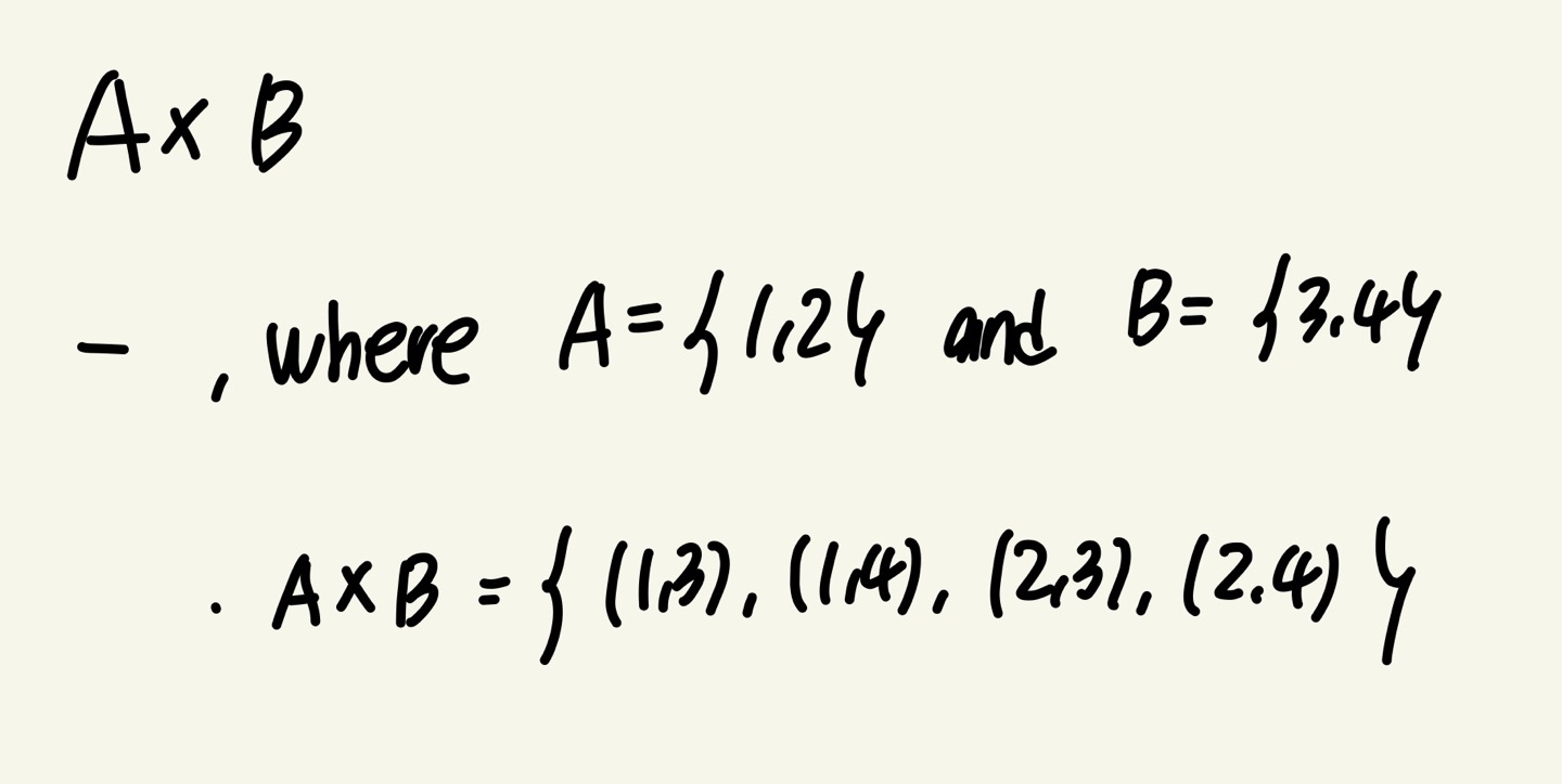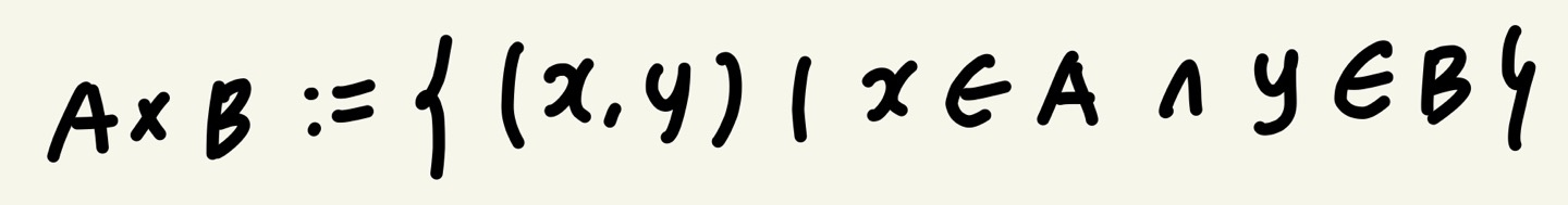 두 집합 A, B가 있을 때, 이 두 집합의 데카르트 곱은 아래와 같이 정의합니다.