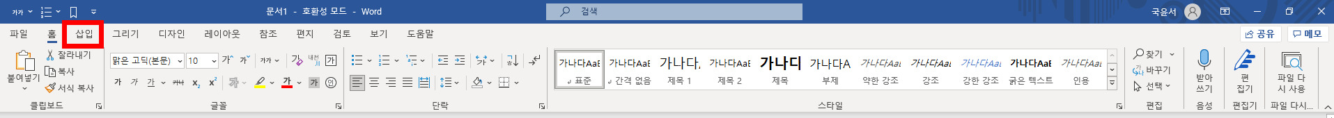 그리고 상단바의 '삽입'을 클릭합니다.